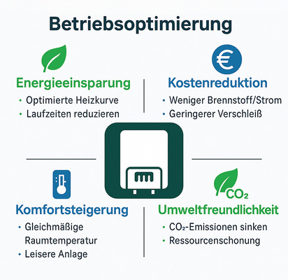 Die optimierende Wartung geht über das normale Reinigen hinaus. du prüfst Brennerlaufzeiten (sollen lang und selten sein), das Taktverhalten (häufiges Ein/Aus deutet auf Probleme hin), den Systemdruck und das Ausdehnungsgefäß.