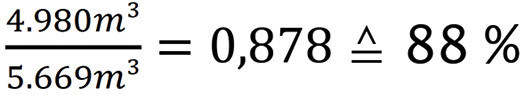 Mit der Altanlage hätte dsa Gebäude voraussichtlich 5.669 Kubikmeter Gas verbraucht. Setzt man nun den tatsächlichen Verbrauch (4.980 m³) zum prognostizierten Verbrauch (5.669 m³) ins Verhältnis, so ergibt sich eine Einsparung, trotz der absolut nur sehr kärglichen Verringerung des Gasverbrauchs von 20 m³ also 0,4 Prozent.
