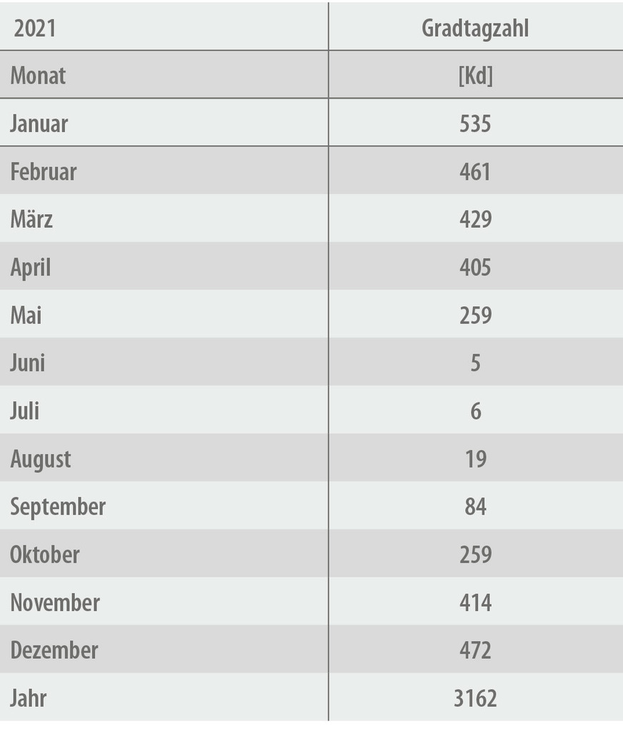 Um den Heizenergieverbrauch abzuschätzen, werden die Gradtagszahlen der jeweiligen Jahre ins Verhältnis gesetzt und mit dem bereits bekannten Wert für ein Jahr multipliziert.