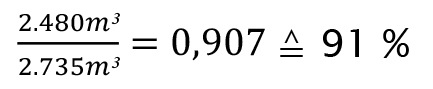 Mit der Altanlage hätte er voraussichtlich 2735 Kubikmeter Gas verbraucht. Setzt man nun den tatsächlichen Verbrauch (2480 m³) zum theoretischen Verbrauch (2735 m³) ins Verhältnis, so ergibt sich eine Einsparung trotz der absolut nur sehr kärglichen Verringerung des Gasverbrauchs von 20 m³, also 0,8 Prozent.