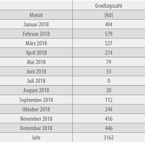 Um den Heizenergieverbrauch abzuschätzen, werden die Gradtagszahlen der jeweiligen Jahre ins Verhältnis gesetzt und mit dem bereits bekannten Wert für ein Jahr multipliziert.