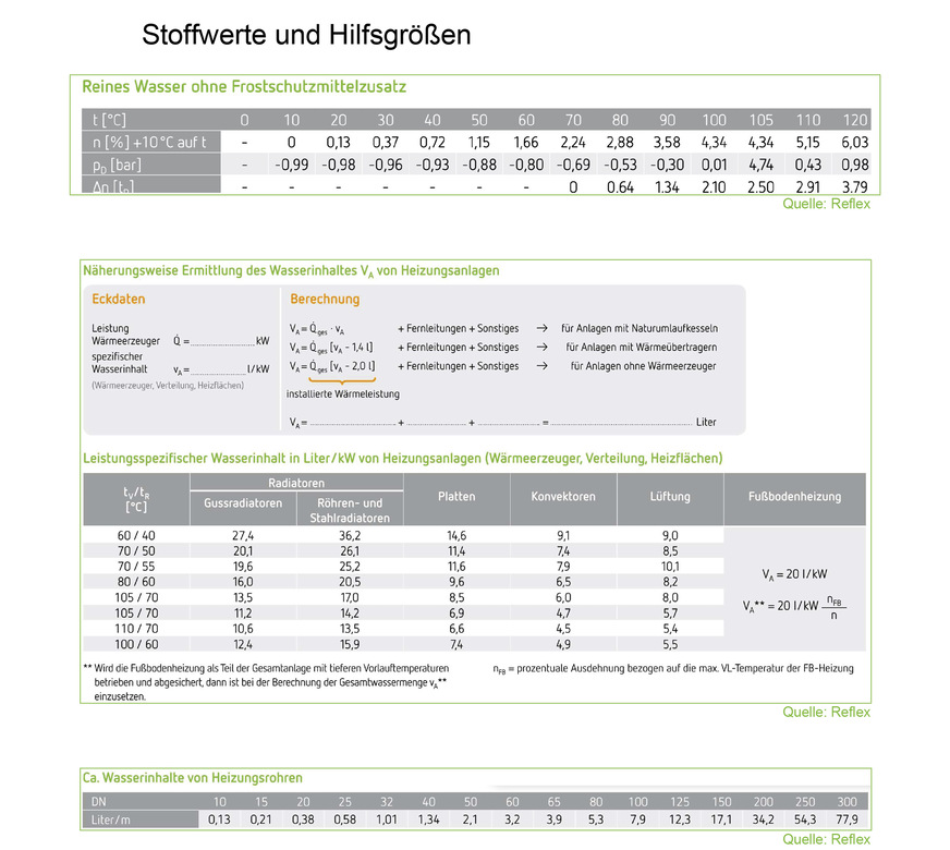 Die Formelsammlung (links)und einige für die Berechnung notwendige Stoffwerte können Sie hier herunterladen: https://www.sbz-monteur.de/das-heft/das-heft-2024-04