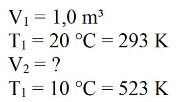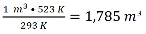 Wiederum erläutert ein Beispiel die Zusammenhänge: Die Wohnzimmerluft von 20 °C (293 K) eines Raumes wird in dem dort betriebenen offenen Kamin auf 250 °C (523 K) erwärmt. Auf welches Volumen erweitert sich ein Kubikmeter dieser Raumluft?