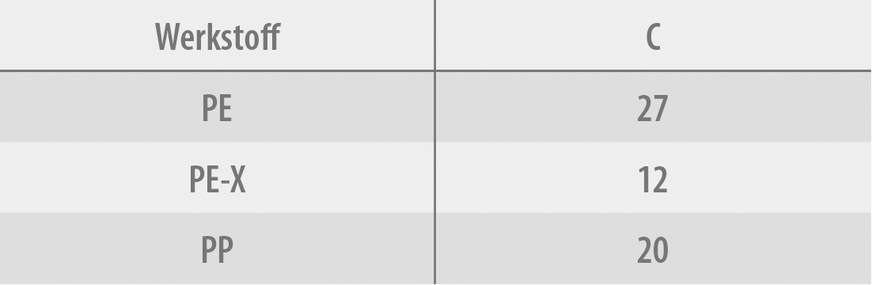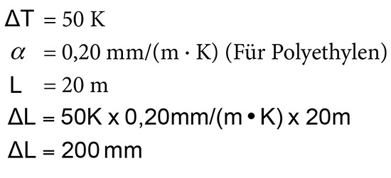 Anders sieht es aus, bei dem PE-Rohr, dessen immense Ausdehnung von insgesamt 200 Millimeter laut einer Formel berücksichtigt werden kann. Die lautet