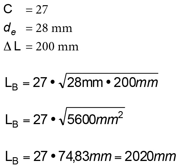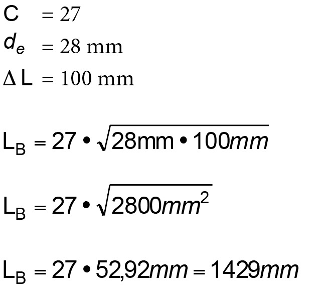 Im ersten Beispiel war eine Kupferleitung mit einer Ausdehnung von 17,00 mm angenommen worden. Legt man die Dimension dieses Kupferrohres mit 28 fest ergibt sich für die Ausdehnungslänge natürlich der gleiche Wert. Konkreter wird nur der Mindestabstand der ersten Schelle also der Wert für LB. Diesen Wert entnimmt man der untenstehenden Tabelle, die in der DIN EN 806-4 erwähnt wird und für Metalle zuständig ist.
