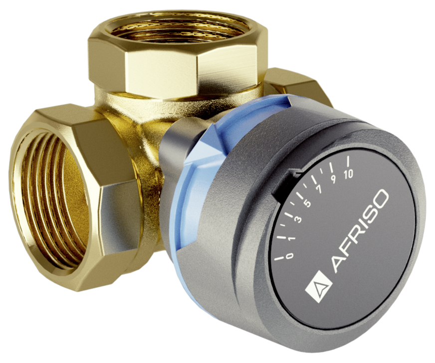 Verhältnismäßig viel kühles Rücklaufwasser wird genutzt, wenn der Drehschieber des Mischers auf kurz vor halb zwölf steht, denn dann ist das Tor B zu AB maximal geöffnet. Am meisten heißes Kesselwasser wird genutzt, wenn der Drehschieber kurz nach halb eins zeigt und daher das Tor A weit offensteht. Also kein Problem, würde man jetzt denken, dieser Mischer wird es schon mischen.