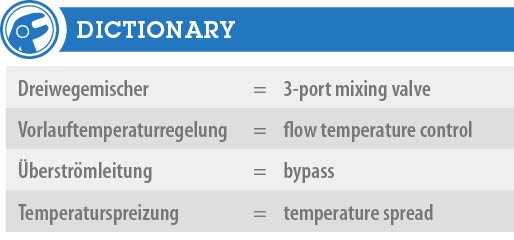 Ist diese Temperatur zu hoch, wird kühles Rücklaufwasser beigemischt, und ist die Temperatur zu niedrig, so wird mehr von dem heißen Kesselwasser verwendet.