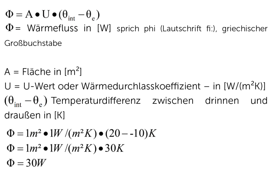 Umgangssprachlich kann man diesen U-Wert mit seiner Einheit W/(m²K) folgendermaßen übersetzen: