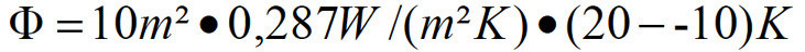 Drinnen soll es warm werden, auch wenn es draußen sehr kalt ist. Man könnte also annehmen, dass drinnen 20 °C ausreichen, um sich wohlzufühlen. Draußen kann es auch schon mal auf – 10 °C abkühlen. Man stellt sich die Frage, welche Wärmeleistung genau dann an diesem Fenster abgeht.