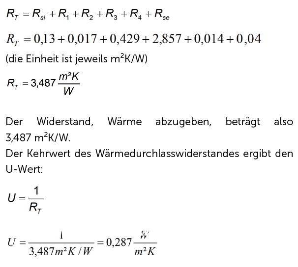 Der U-Wert ergibt sich also aus dem Kehrwert des Wärmedurchlasswiderstandes RT.