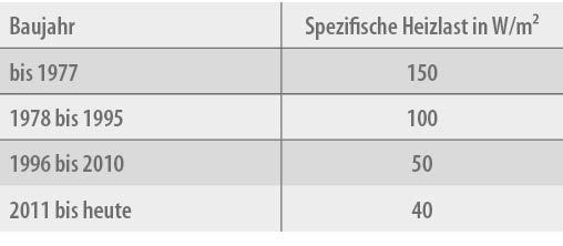Als weitere Orientierung ist es natürlich entscheidend, mit welcher Leistung der jeweilige Raum beheizt werden soll. Hierzu gibt es Anhaltspunkte aus standardisierten Listen.
