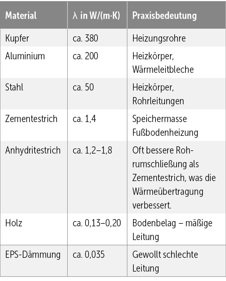 Wärmeleitung passiert überall dort, wo Materialien direkten Kontakt haben. Die übertragene Wärmeleistung berechnet sich nach dem Fourier-Gesetz:
