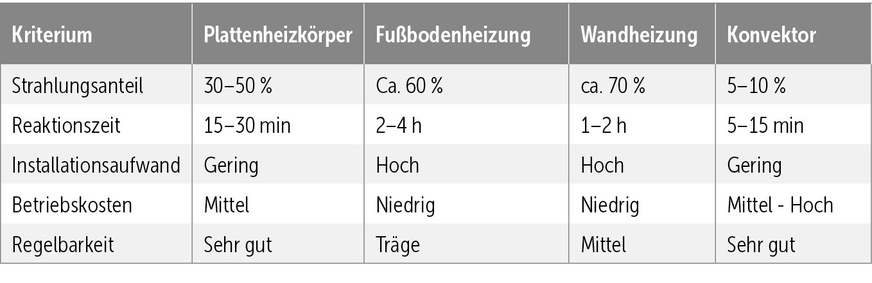 Nachteile: Geringe Behaglichkeit, kaum Strahlung, Staubaufwirbelung, hoher Reinigungsaufwand (Staubablagerungen auf Lamellen), Geräusche bei Gebläsemodellen.