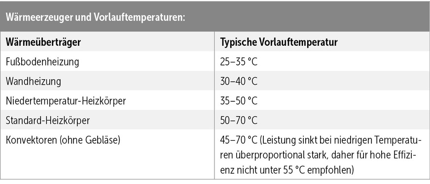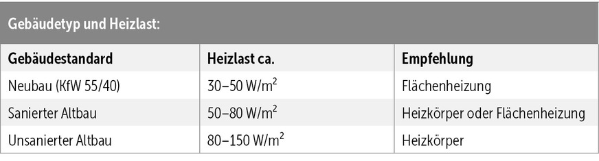 Tipp für die Sanierung: Die benötigten Heizkörper müssen für den Betrieb mit Wärmepumpen anhand der raumweisen Heizlast und der gewählten Systemtemperatur (z. B. 50/40/20 °C) mit den Leistungsdaten der Hersteller neu ausgelegt werden. Pauschale Flächenregeln sind nicht zielführend. Als grober Anhaltspunkt: Ein bisheriger Heizkörper muss oft durch einen Typ 22 oder 33 mit doppelter bis dreifacher Baulänge ersetzt werden, um die gleiche Heizleistung bei niedrigerer Vorlauftemperatur zu erzielen.