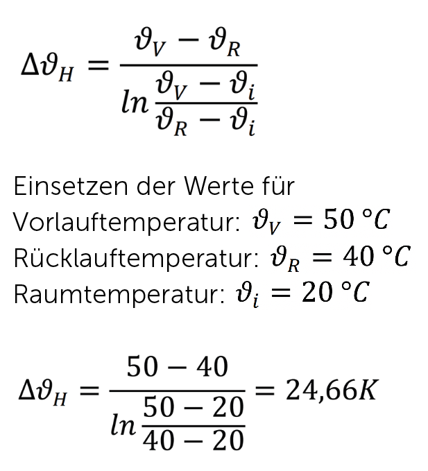 Für den gedanklichen Ansatz reicht es also im Beispiel aus, das leicht zu errechnende arithmetische Mittel mit 25 K zu betrachten und nicht zwingend auf das logarithmische Mittel zu wechseln.