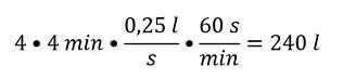 Die Anforderung für das Duschproblem ist, dass 4 Personen jeweils 4 Minuten mit 0,25 Liter pro Sekunde duschen.