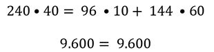 Die Probe ergibt, dass 144 kg plus 96 kg eine Masse von 240 kg ergeben.