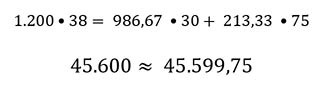 Von den 26,67 kg/Anteil rechnet man nun ganz einfach wieder hoch auf 37 Anteile Kaltwasser: