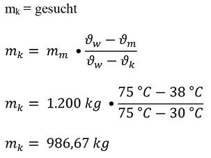 – mm die Masse an gemischtem Wasser in Kilogramm [kg]