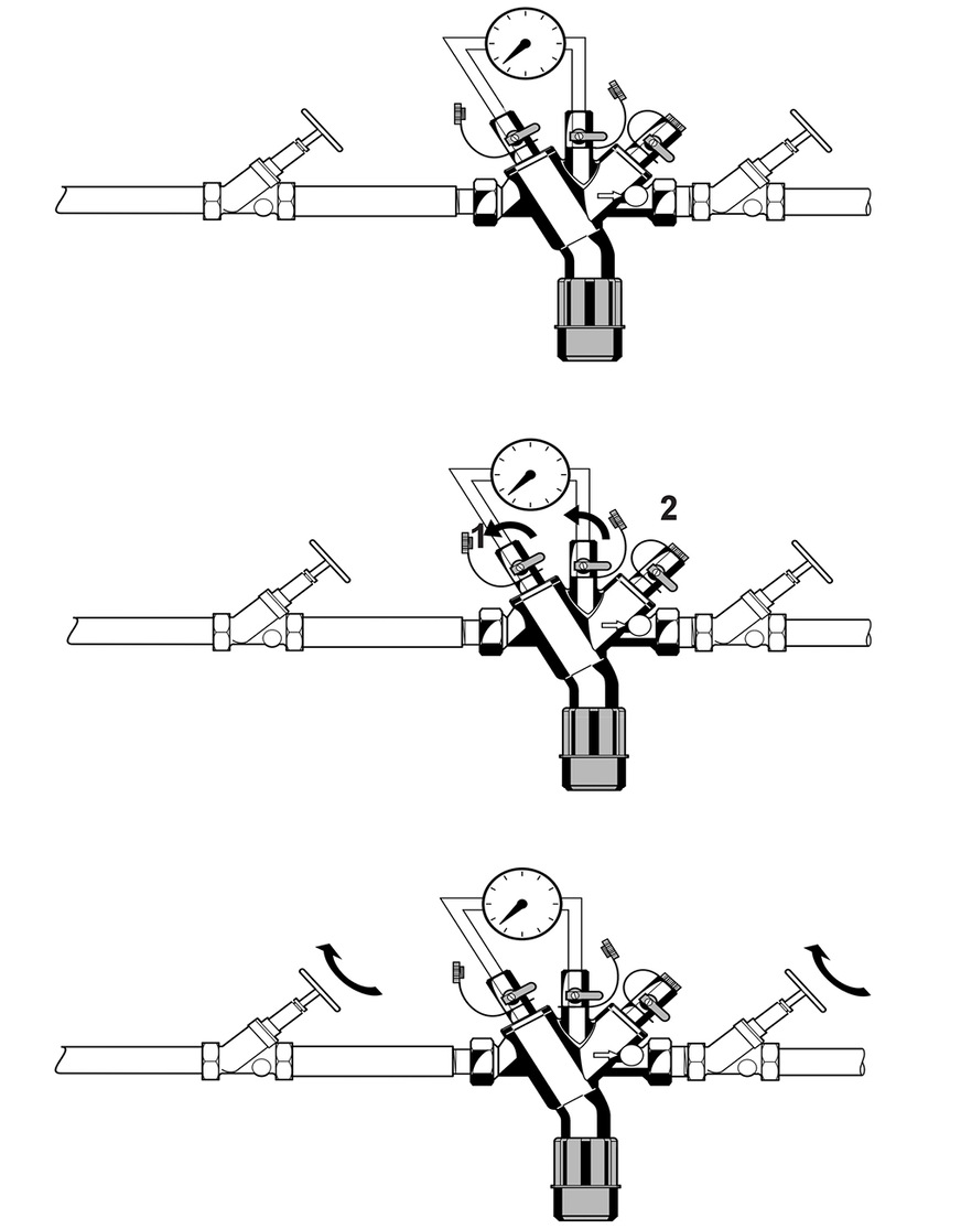 2.) Öffnen der Kugelventile 1 und 2