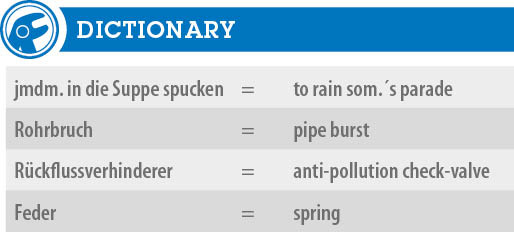 In der Dachzentrale eines 6-stöckigen Mehrfamilienhauses steht ein Heizkessel zur Beheizung des Gebäudes. Dieser Kessel ist über einen Schlauch mit der Trinkwasserinstallation verbunden. Das ist zwar nicht erlaubt, wird aber in der Praxis noch sehr häufig angetroffen. Der Druck der Trinkwasserinstallation an dieser Zapfstelle beträgt wegen der Höhenlage nur noch 2,0 bar. Das stimmte seit Jahren mit dem Fülldruck dieser Heizungsanlage überein. Eine Undichtigkeit des zugehörigen Zapfhahns fällt daher gar nicht auf, ergibt sich doch druckseitig eine ausgeglichene Pattsituation zwischen Heizung und Trinkwassernetz. Wegen eines Rohrbruchs im Keller des Hauses wird der Hausanschluss abgesperrt. Der Reparaturtrupp lässt den Druck der Trinkwasserinstallation an einem Ausgussbecken im Keller ab. Die Folgen sind klar: Eben noch hielt sich der Druck in der Dachzentrale zwischen Trinkwasserinstallation und Heizung die Waage. Plötzlich überwiegt der verbleibende Druck im Heizungssystem. Das stinkige Heizungswasser kann also durch den Füllschlauch ins Trinkwassersystem fließen. Den ersten Schluck aus dem dann wieder gefüllten Trinkwassernetz möchte man nicht trinken. Erschwerend für die Einschätzung der Gefährdung für das Trinkwasser kommt noch Folgendes hinzu: Es kann nicht immer sicher abgeschätzt werden, ob chemische Mittelchen dem Heizungswasser beigemischt wurden, so genannte Inhibitoren.