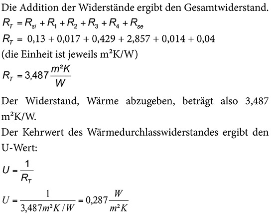 Alle Widerstände zusammen ergeben den Gesamtwiderstand und dessen Reziprok ergibt den U-Wert.