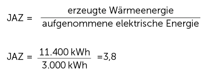 JAZ = 3,8 → Über das ganze Jahr hinweg wurden aus 1 kWh Strom im Schnitt 3,8 kWh Wärme erzeugt.