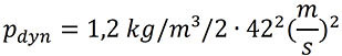 Wenn der Wind mit einer Geschwindigkeit von 151 km/h an einer starren Wand auf 0 km/h abgebremst wird, so hat sich der dynamische Anteil gewandelt. Dieser wirkt dann als Druck von 1.058 Pa.