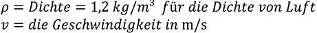 Der Wind wird aus voller Fahrt auf Null abgebremst und das ergibt, dass der dynamische Druck komplett in einen statischen Druck umgewandelt wird.
